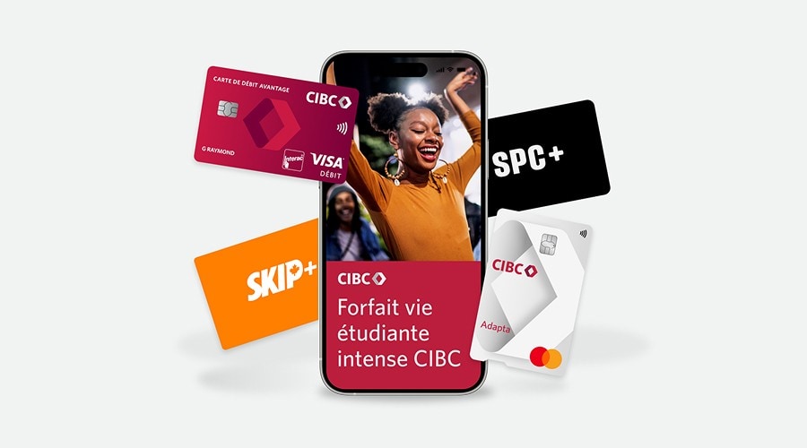 Obtenez une carte de crédit, un compte chèques, un compte d’épargne et plus encore avec le Forfait vie étudiante intense CIBC – il suffit de remplir une simple demande en ligne.